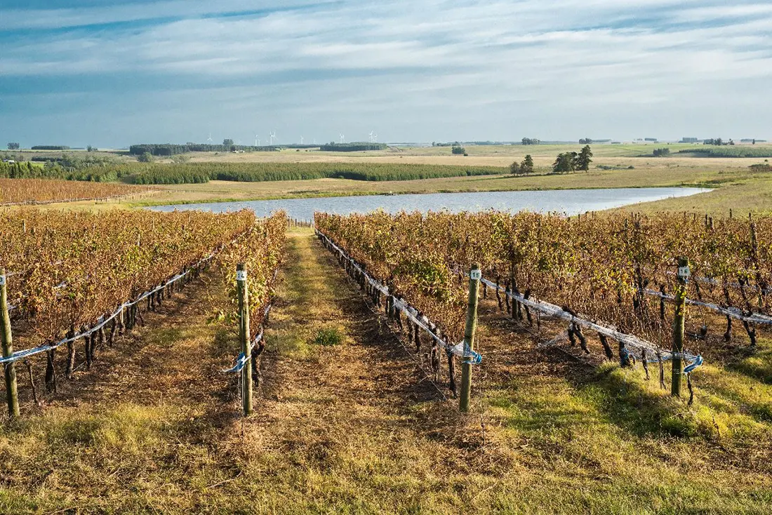 Pero el asunto es cómo se pasa de una producción tradicional y clásica del campo uruguayo, a una tan específica como cultivar viñedos. Es que Mario siempre participaba de los grupos CREA ganaderos y cuando al final de los 90, llegó a instalarse en la zona, un francés, propietario del Ch. Haut Selve de Burdeos. ¿Plantó sus viñedos y fue entonces que junto con Silvina se dijeron… “¿y nosotros por qué no? Me integré entonces al grupo Julio Omar Borsani Viticultores, quien me dio la asistencia técnica para llevarlo a cabo”, recuerda. Sólo plantaron tres variedades tintas: Tannat y las dos Cabernet, en un espacio que no supera las 10 hectáreas, de las 1.400 que el predio tiene.