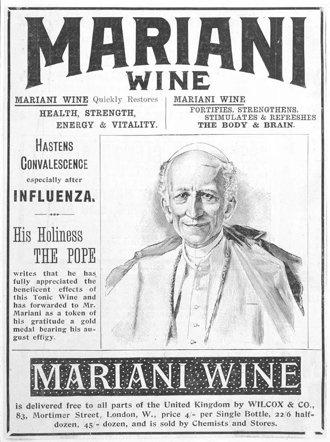 El Vin Mariani fue promocionado como un tónico que “restauraba la salud, la fuerza y la vitalidad”. Su éxito fue tal que llegó a ser consumido por figuras de la realeza y el Vaticano. La reina Victoria de Inglaterra y los papas León XIII y Pío X fueron algunos de sus más célebres admiradores.