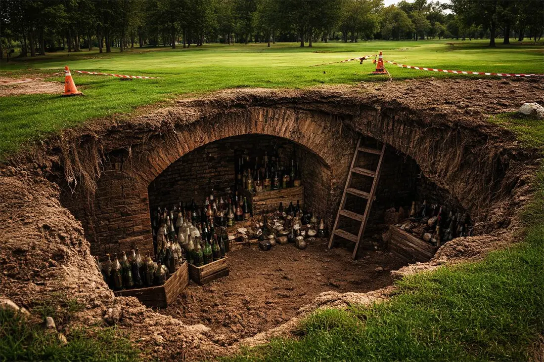 Mientras trabajaba en el Club de Golf Davyhulme Park, Steve Hopkins supervisor del Green, se topó con una cava del siglo XIX. Sin salir de su sorpresa, comentó que al intentar reparar lo que creyó sería un desagüe averiado, un hueco se abrió en el terreno. «Al empezar a ensanchar el hoyo, el vacío se abrió. Tuve que usar una excavadora para examinar mejor el derrumbe y encontré una puerta enmarcada en ladrillos, que conducía a la cámara subterránea. Tomé mi linterna, lo revisé y era una bodega«, dijo Hopkins. Al bajar, se encontró que contenía docenas de botellas que alguna vez albergaron vino, champagne y oporto.